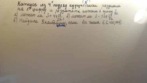 Каждое из четырёх подряд идущих натуральных чисел разделили на их первые цифры и результаты сложили в сумму S.