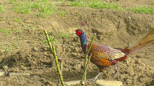 Фазан пришел к нам в огород. Его мы здесь не ожидали увидеть