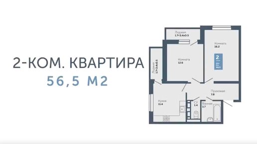 Обзор 2-комнатной квартиры площадью 56,5 кв.м. в ЖК "Бауинвест"