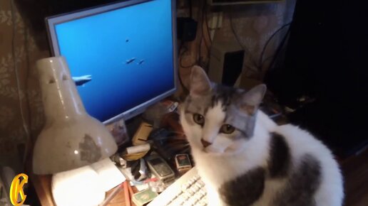 Кот Тиша и компуктерный аквариум. Предмет неустанного вожделения кота Тиши, который с удивлением понял что у него ничего не получится.