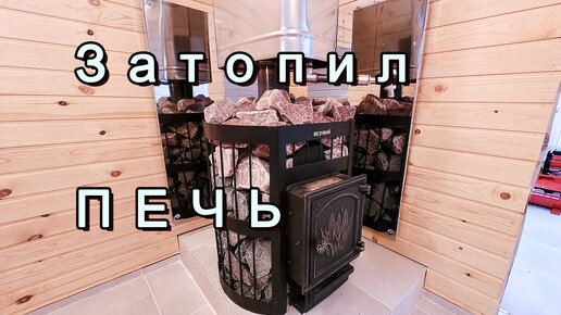 Установили дымоход и уложил камни, первая протопка. Каркасная баня.