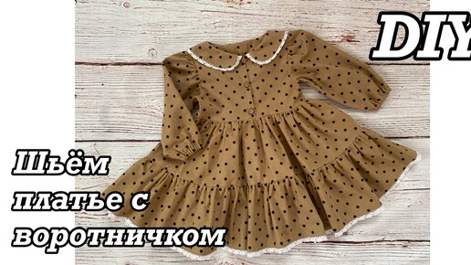Как сшить нарядное детское платье из тёплого хлопка с воротничком и пуговицами. (Рукав-фонарик)