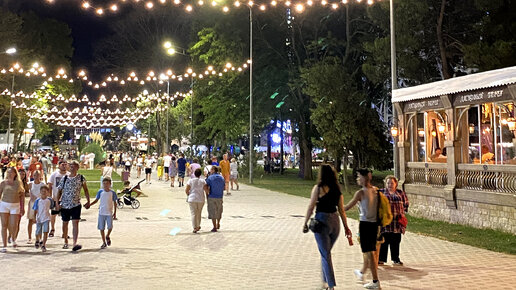 Курортные будни на отдыхе в Анапе. Набережная полна людей, народ гуляет, веселится.
