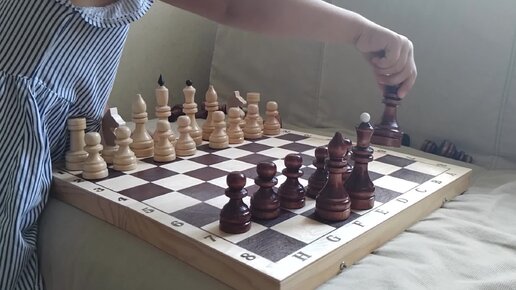 3-х летняя племянница расставляет шахматные фигуры в начальную позицию.