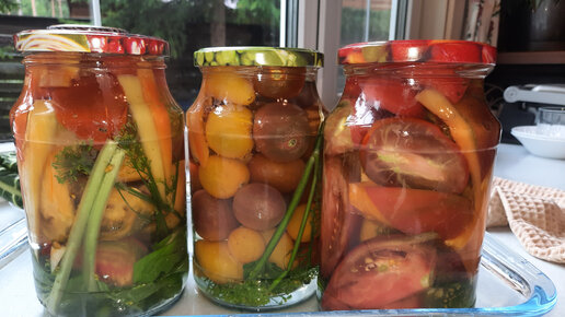Делаю заготовки из помидоров на зиму. Помидоры маринованные резаные. Очень вкусные.
