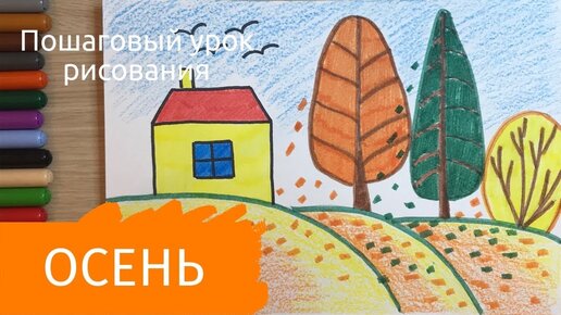 Рисунок осень. Рисунок на тему осень детский Легкий осенний пейзаж для детей. Рисуем осенние рисунки. Карандаши и краски