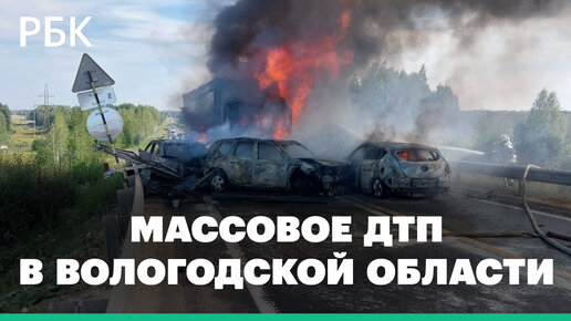 Семь машин загорелись после ДТП с грузовиком в Вологодской области