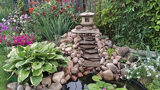 Какие чудеса творит моя подруга у себя во дворе. Водопад своими руками.