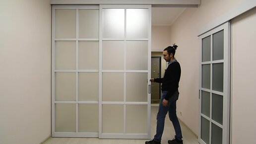раздвижная перегородка и откатная дверь в едином стиле