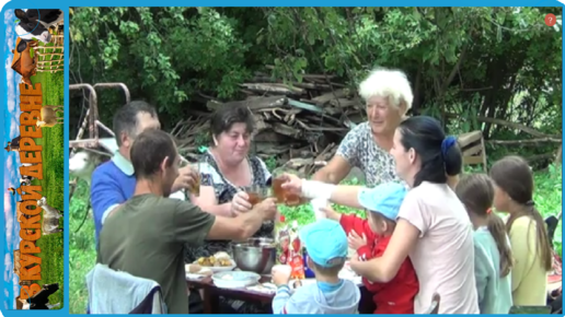 поработали, теперь можно и отдохнуть всей семьей, она все таки потекла, жизнь в деревне