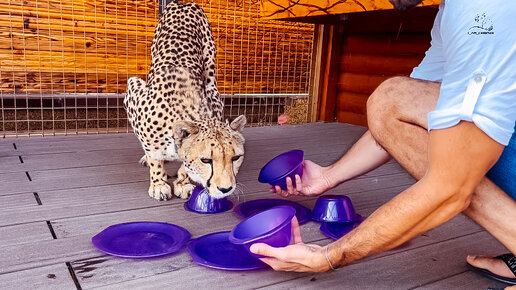 Играем в наперстки с Гердой. Найдет ли гепард вкусняшки по запаху?