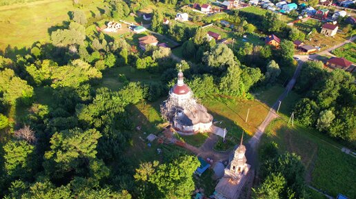 Село Каймары с высоты птичьего полета. Кирилло-Белозерская церковь.