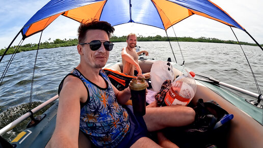 Плывем на лодке на другой остров, кончился бензин и сломался мотор на середине пути