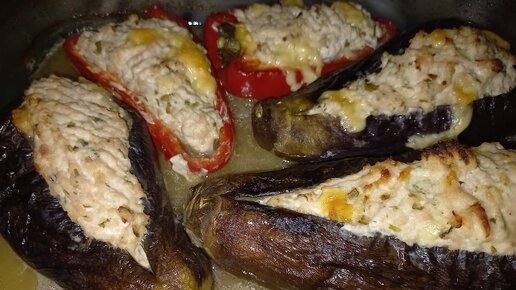 Баклажаны фаршированные индейкой и сыром