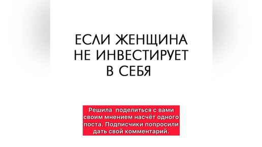 "Если женщина не инвестирует в себя". Мой профессиональный комментарий. Вам не понравится