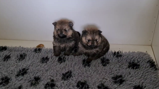 Щенкам шпица 4 недели, щенки пробуют первый в своей жизни корм!