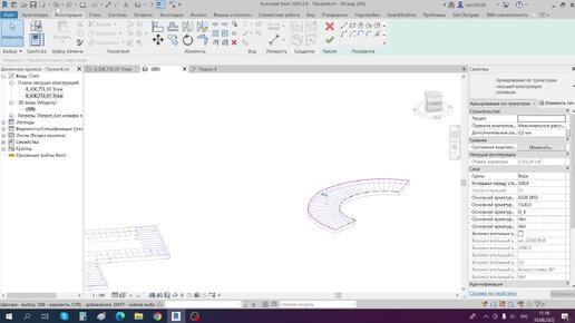 Армирование по траектории для криволинейного объекта (несущей плиты перекрытия)