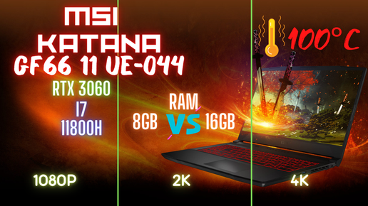 MSI KATANA GF66 11UE-044 ОБЗОР И ТЕСТЫ В ИГРАХ FHD,2K,4K. 8GB RAM VS 16GB В НОУТБУКЕ