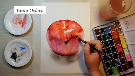 2 часть 🍎Красное яблоко акварелью 🍎.