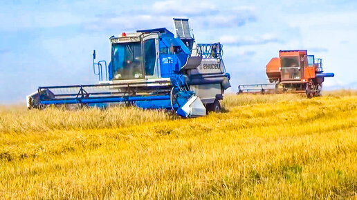 Уборочная на комбайнах Енисей! Отвожу зерно на Камазе. Ребята прессуют солому прессом John Deere 550.