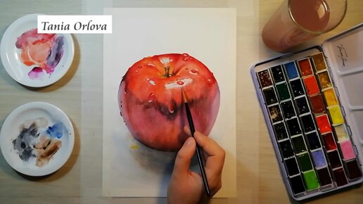 3 часть 🍎Красное яблоко акварелью 🍎.