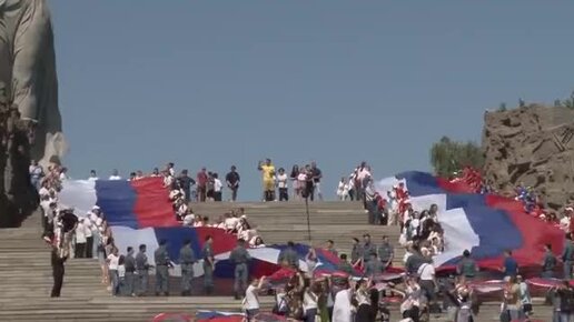 В Волгограде на Мамаевом Кургане развернули флаг России