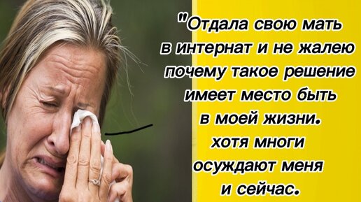 "Отдала свою мать в интернат и не жалею", - почему такое решение имеет место быть