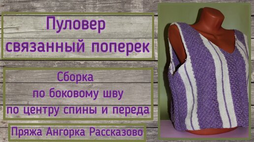 Двухцветный пуловер связанный поперек. Выпуск №3. Сборка по боковому шву, и по центру спины и переда. Пряжа Ангорка Рассказово.