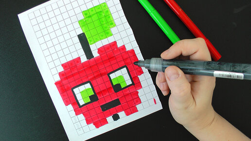 Как нарисовать яблоко для детей. PIXEL LOVE - рисунки по клеточкам с подсказками.
