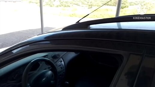 Разбитая и брошенная машина на дороге.