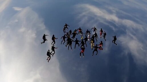 Спортсмены собрали в свободном падении 2 вертикальные фигуры из 30 человек