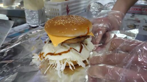 жареный яичный чизбургер - корейская уличная еда