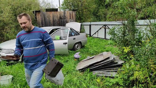 Приехал на дачу в деревне привез бу профнастил из дома