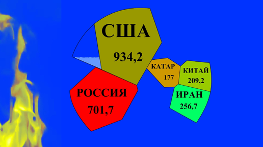 Какие 17 стран добывают больше всего природного газа в мире (в миллиардах кубометров за год)