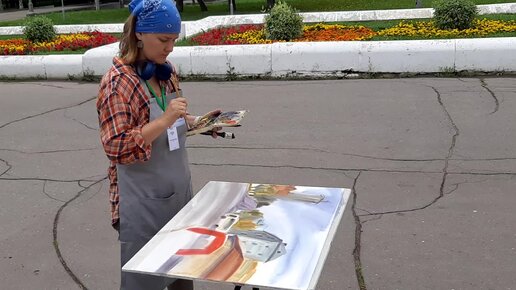 20220810_110803 В городе пленэр. Художница у Филармонии. Как пишет