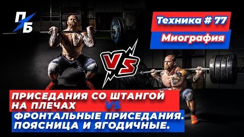 Приседания со штангой на плечах VS фронтальные приседания. Поясница и ягодичные. Миография