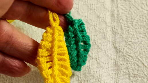 Необычный декоративный листик можно связать за пару минут и украсить любое изделие или сделать брелок