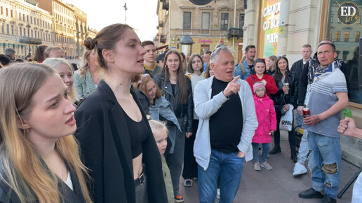 Петербуржцы, гости Северной столицы и уличные музыканты дружно напевают песню «Группа крови» Виктора Цоя