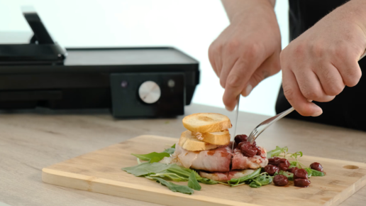 Жареный камамбер с ананасами и вишневым соусом