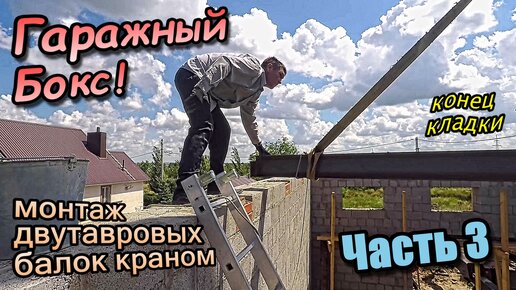 Монтаж двутавровых балок краном \ Полу-фронтоны односкатной крыши \ Завершаем кладку \ Часть 3 (июль 2022)