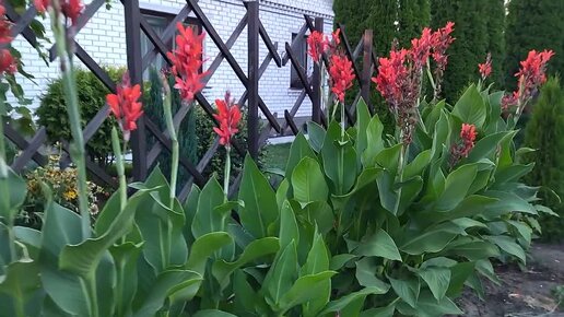 Вырастила цветущую ширму между огородом и садом из канн