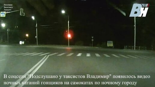 Появилось видео ночных катаний гонщиков на самокатах по ночному городу во Владимире