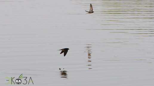 Стремительный полет ласточек над зеркальным прудом