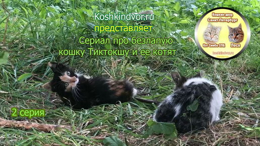 Котята трёхлапой кошки и новая игрушка котёнка Раськи