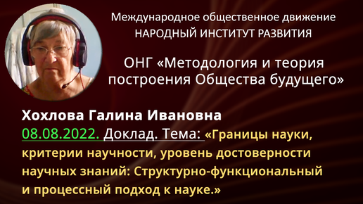 Доклад. Хохлова Г.И. "Границы науки, критерии научности, уровень достоверности научных знаний..." [08.08.2022]