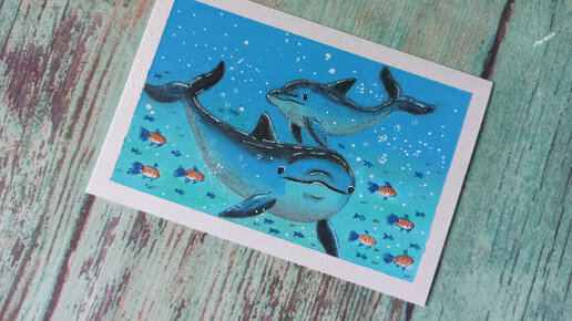 Как нарисовать дельфинов в море масляной пастелью