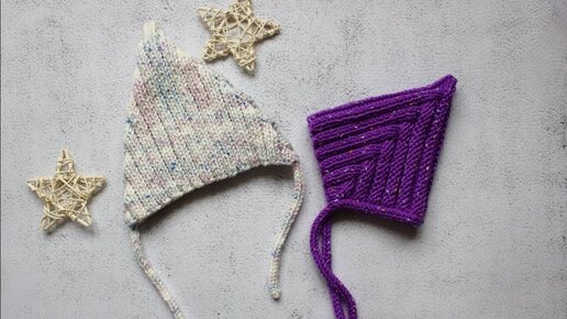 Чепчик "Гномик" спицами/ шапка для новорождённых резинкой 2×2