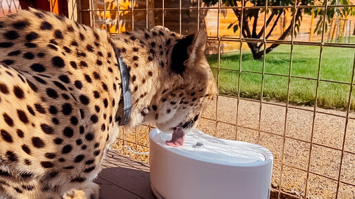 Собственный фонтан для гепарда. Герда оценила новый гаджет.