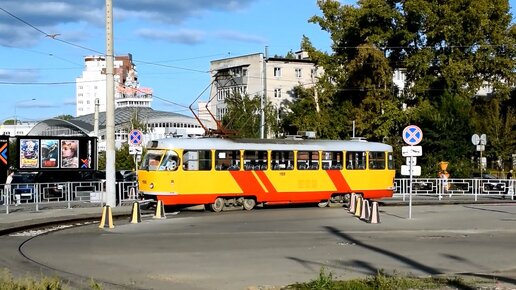Трамвай Tatra T3SU КВР Барнаул-1106. Разворот на кольце.