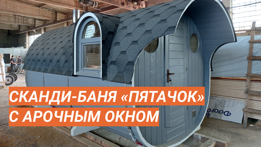 Баня «Пятачок» с арочным окном в скандинавском стиле
